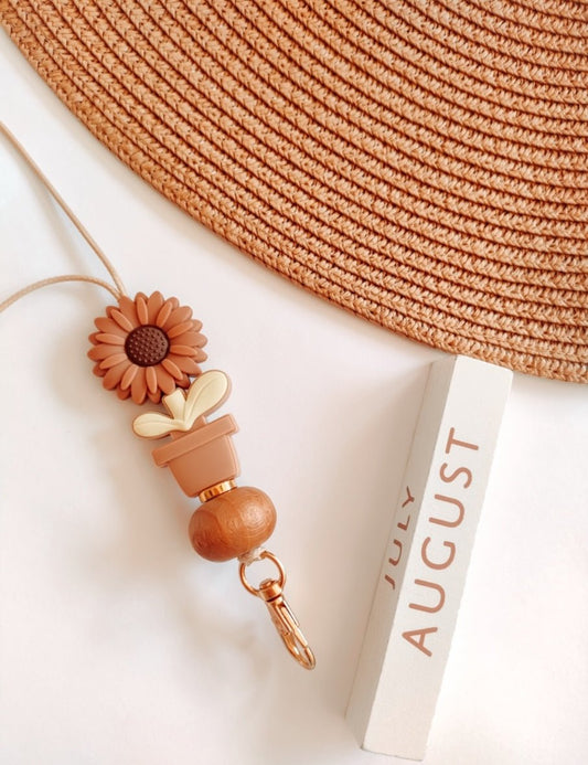 Botanical Bliss Lanyard with Wooden Circle daisy.