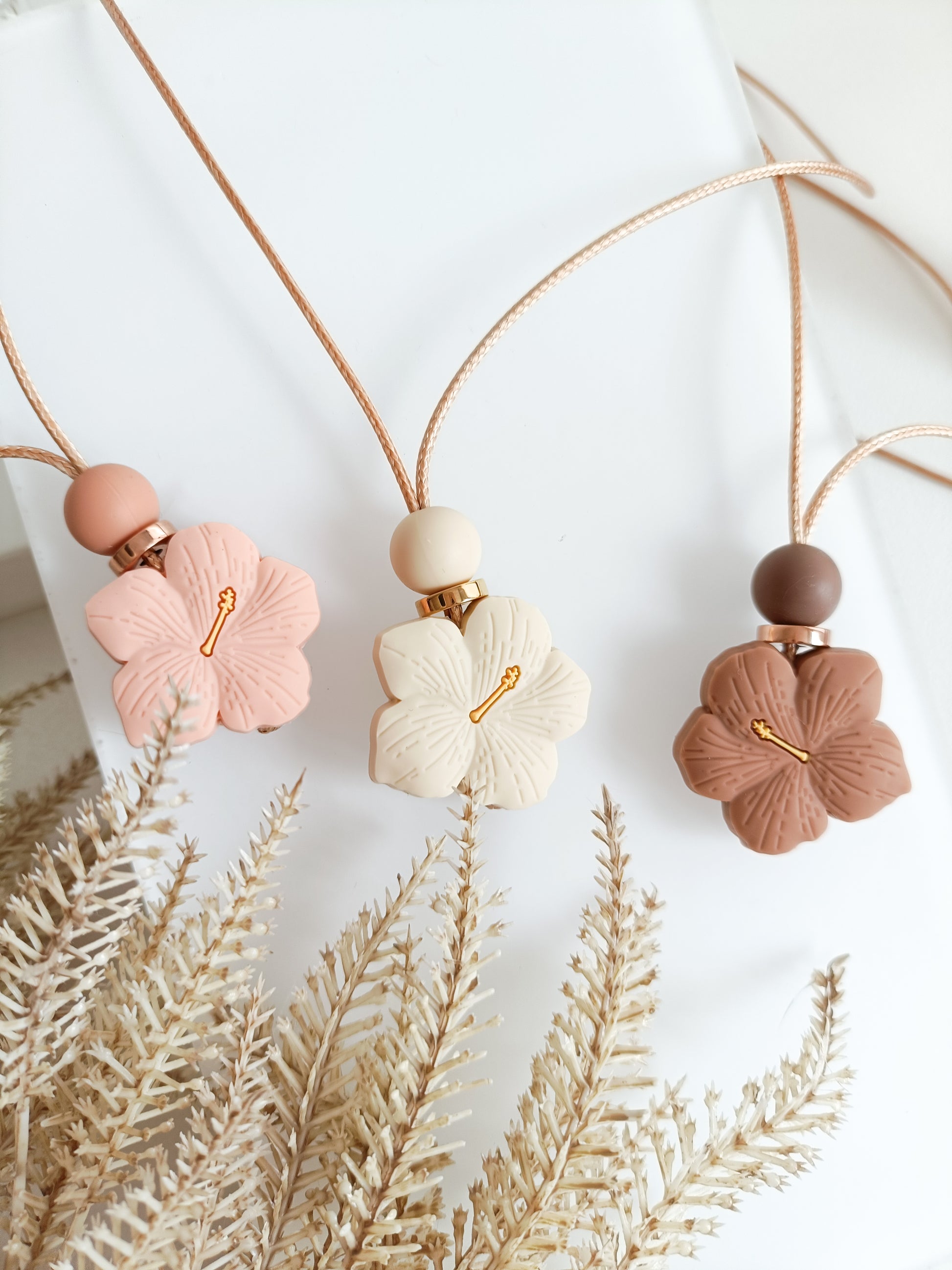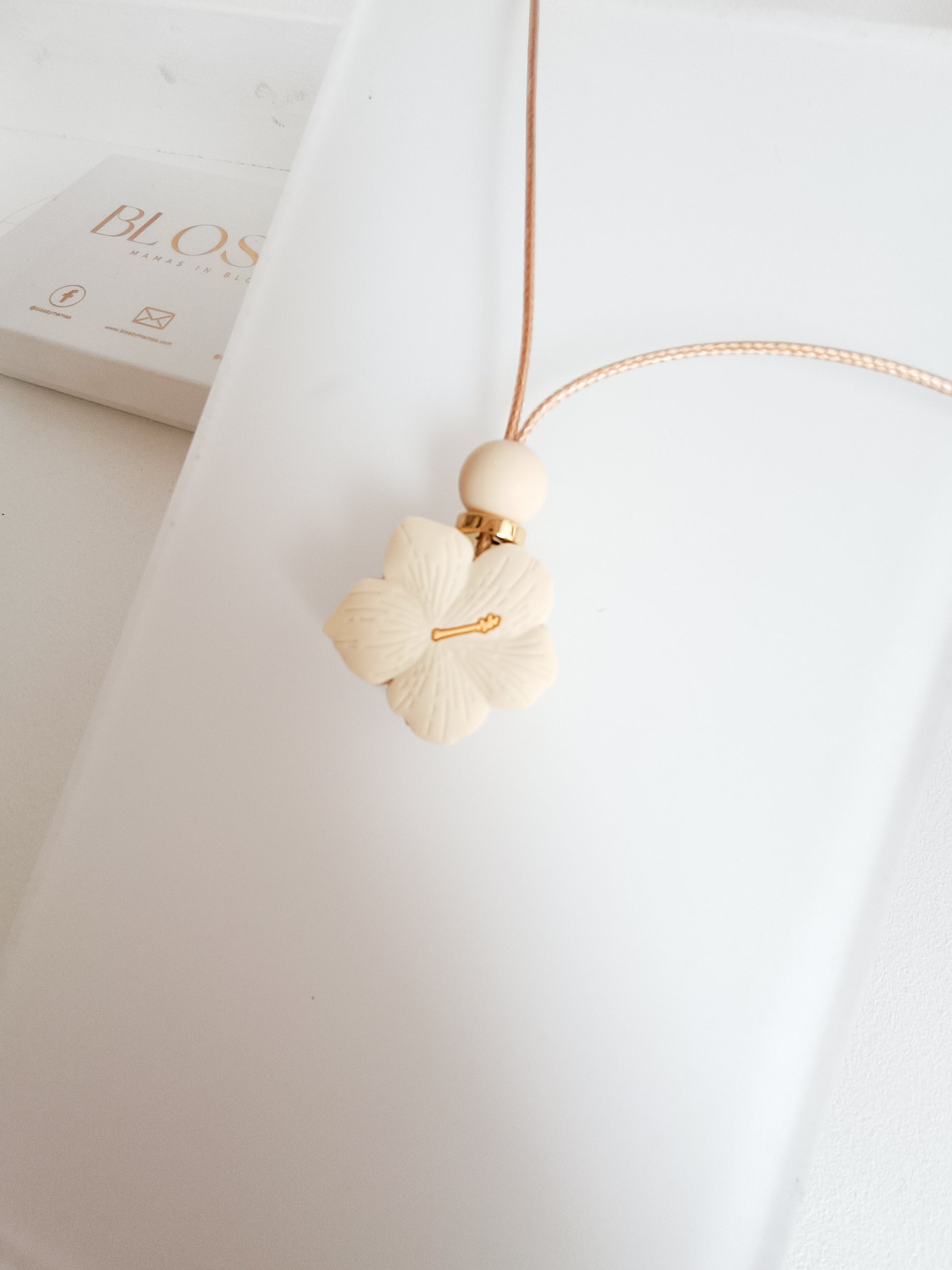 Keep your baby's hands happy with this Dainty lily Pendant. Crafted with a 20mm daisy, gold stopper, and oatmeal silicone bead all snugly wrapped in a rose gold cord, this necklace is sure to make a stylish statement. It's not just a pretty face though - BPA-free silicone construction makes it safe and perfect for breastfeeding!