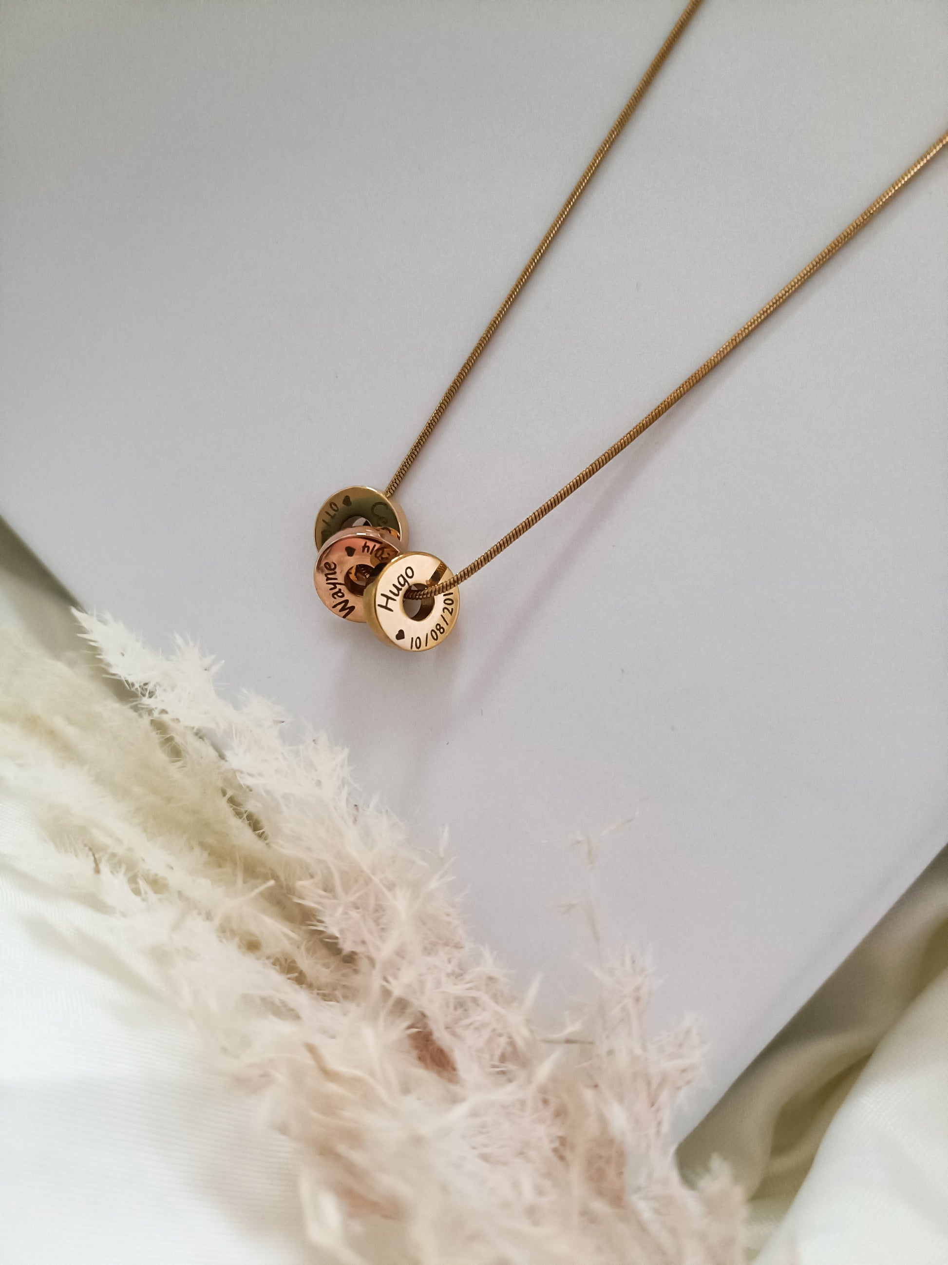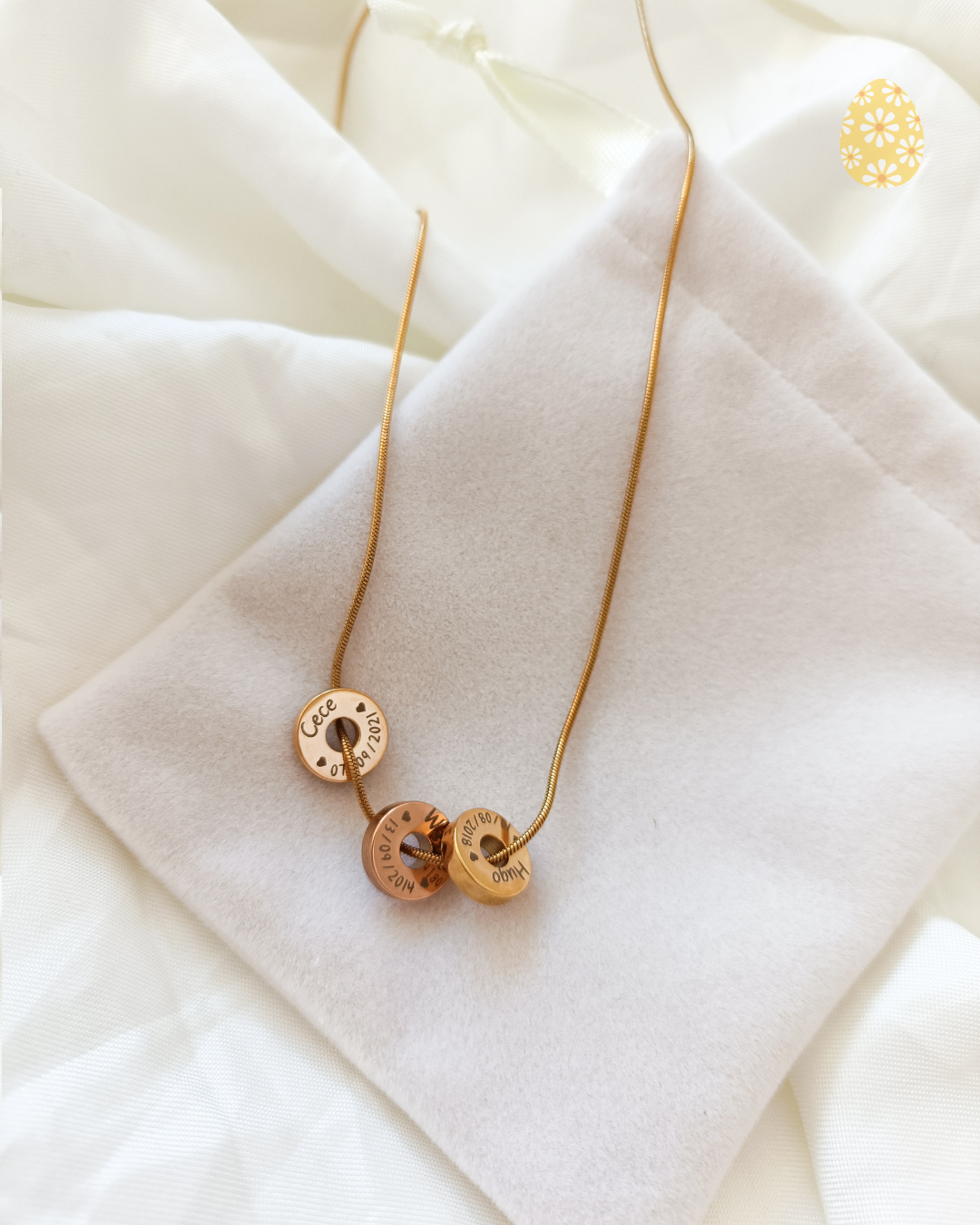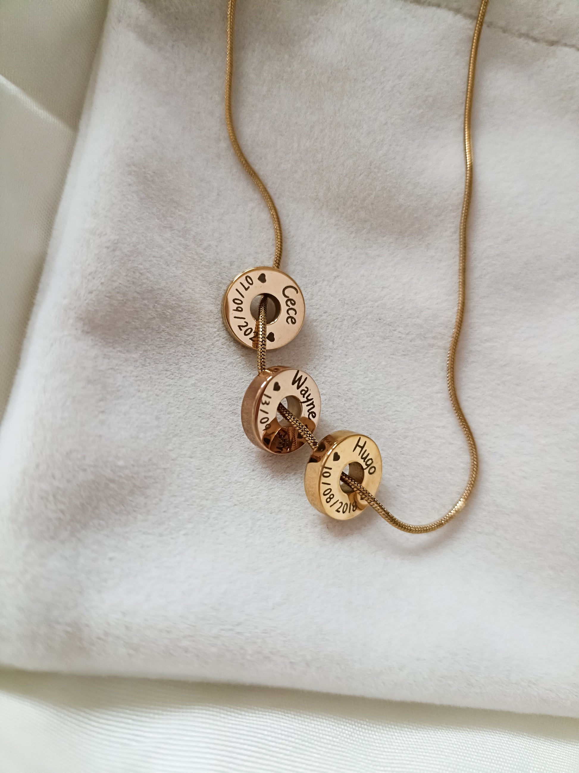 Wear your Precious memories with pride, our beautiful stainless steel necklaces are plated in 14k Gold with dinky links complete with your details. Each necklace is tailored to you, the amount of memories is endless.