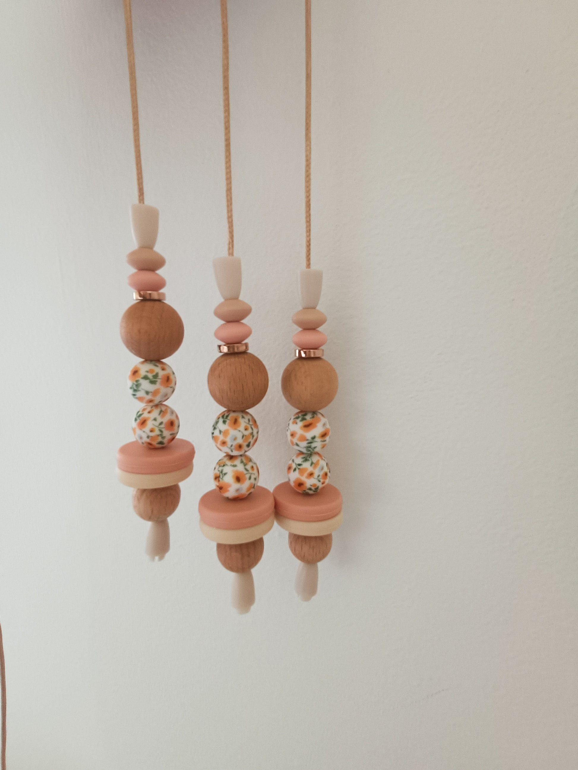 - Beads ranging from 12mm-19mm, Silicone, Beechwood.