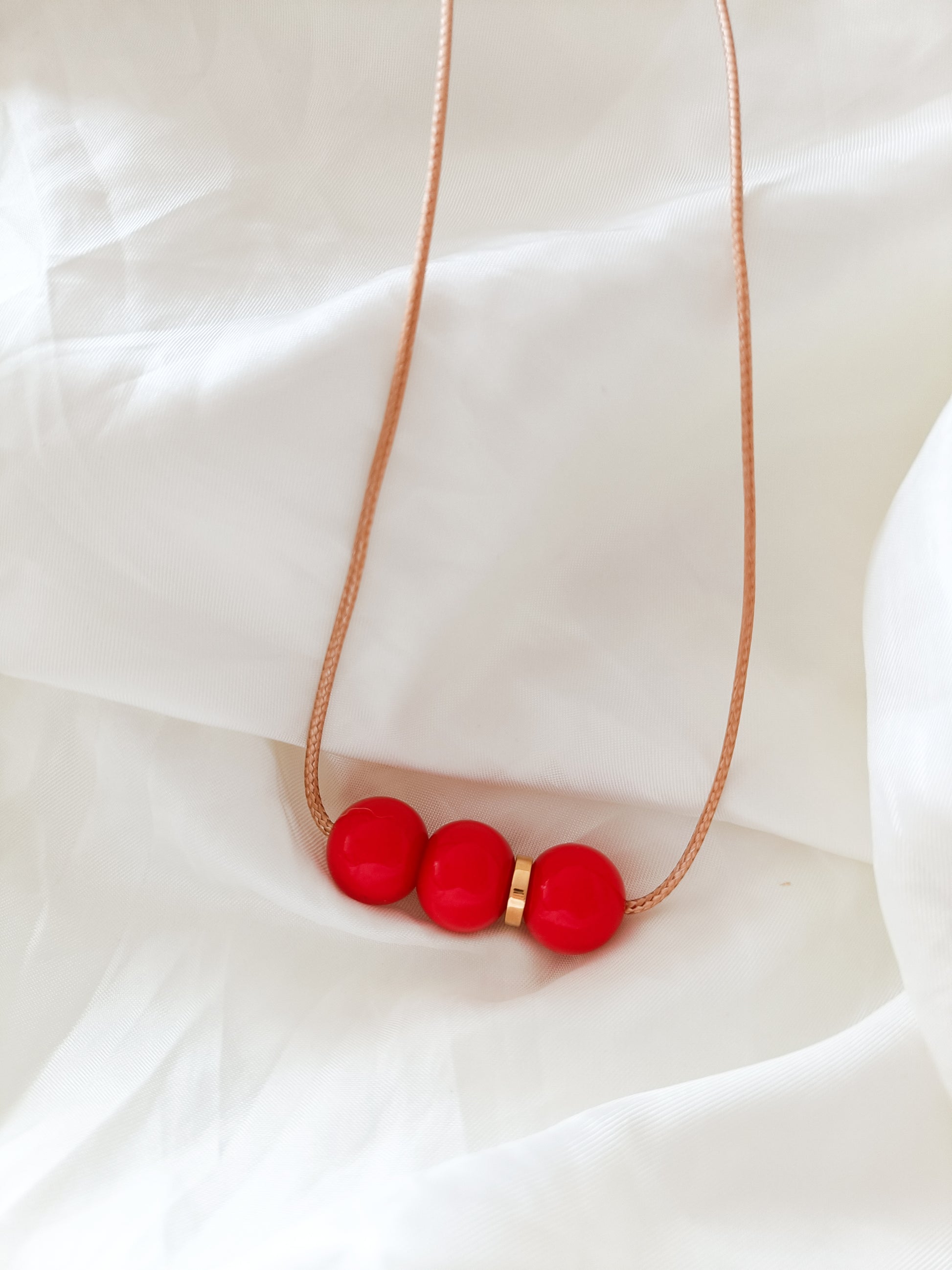 - Three 15mm Round silicone Shiny beads divided by a statement stopper.
